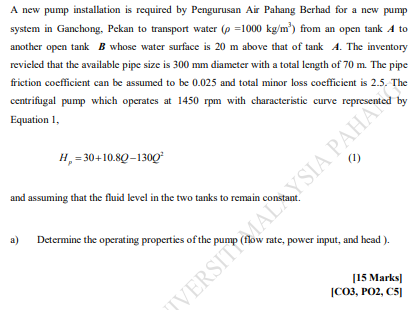 Solved A New Pump Installation Is Required By Pengurusan Air Chegg Com
